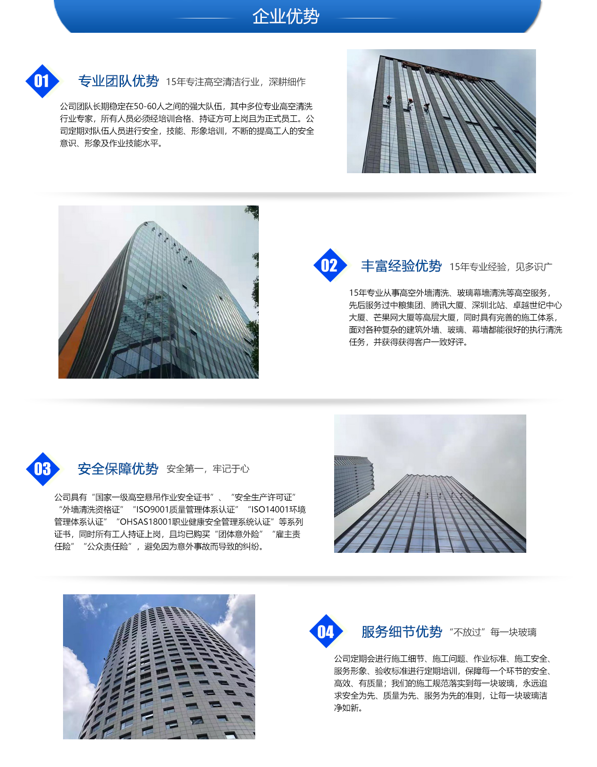 以客戶為中心,關(guān)注客戶需求,為客戶提供最好性價(jià)比的高空清潔服務(wù)。